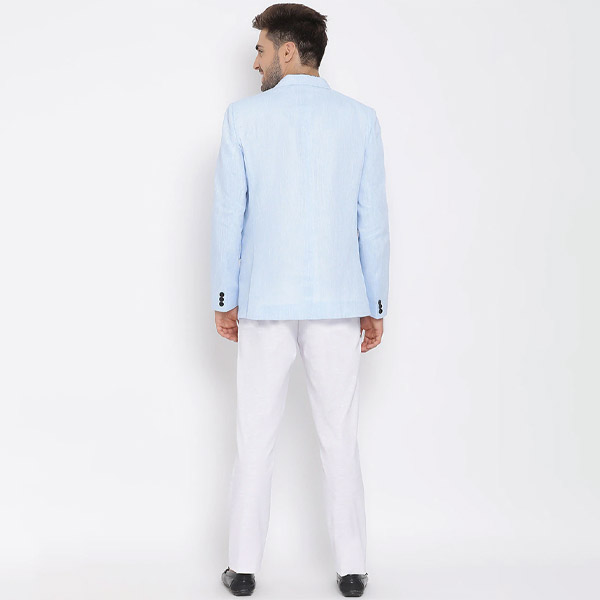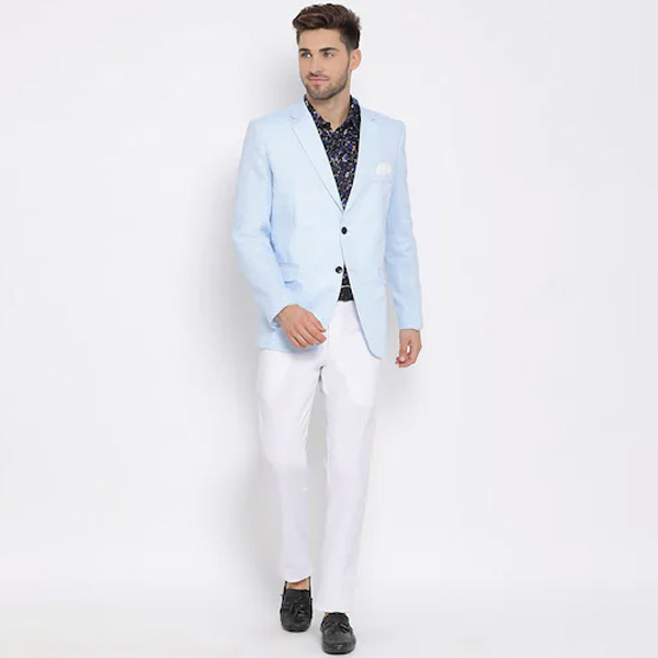 Blue Solid Single Breasted Suit